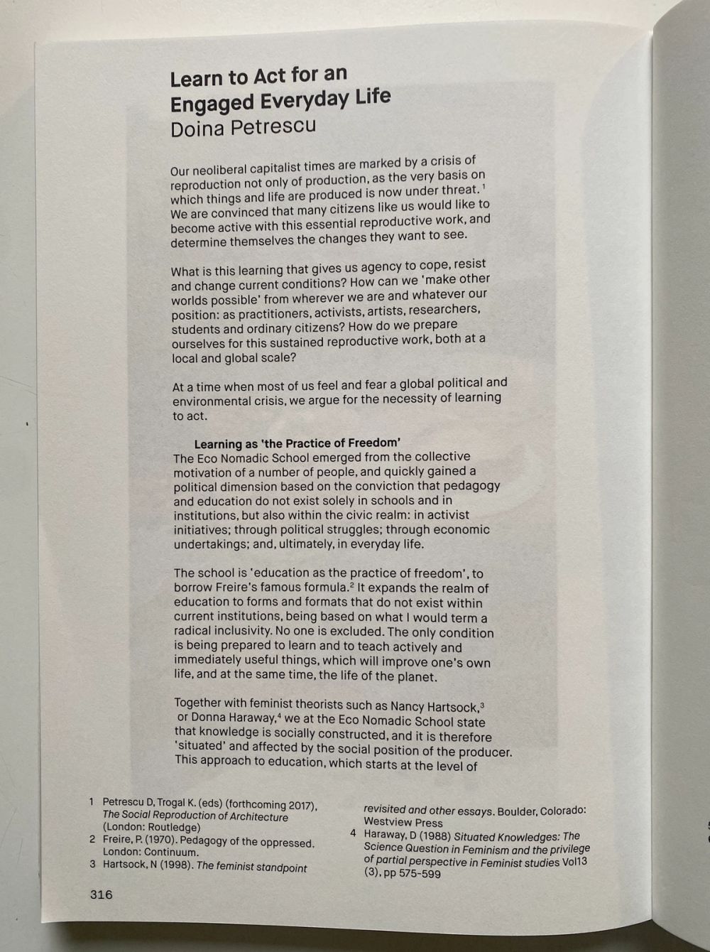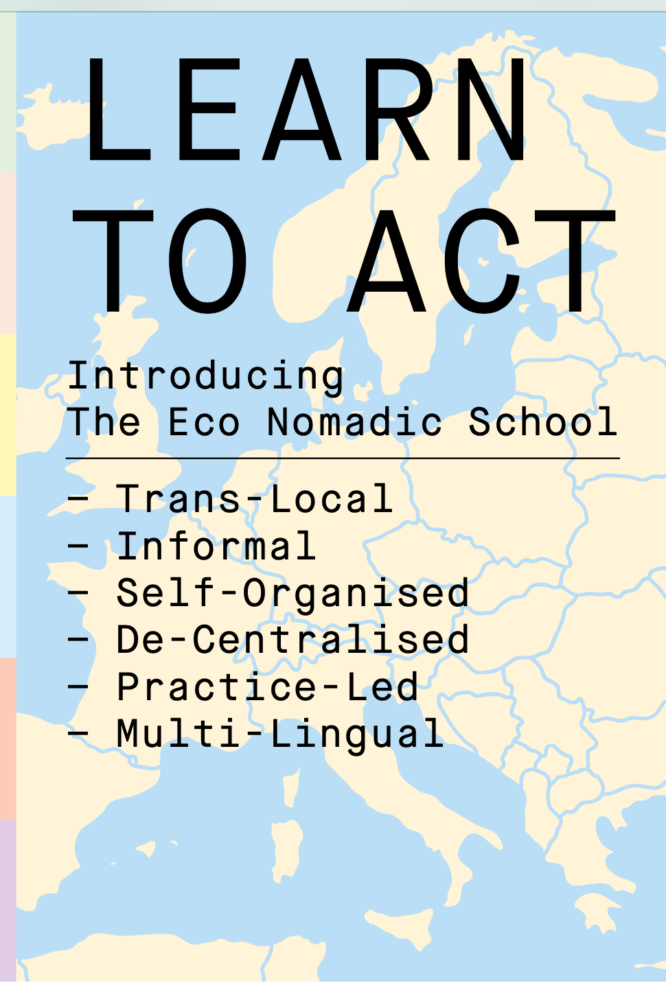 Learn to Act describes the Eco Nomadic School, a collaborative, trans-local, multi-lingual place for mutuial knowledge exchange between localised projects.
