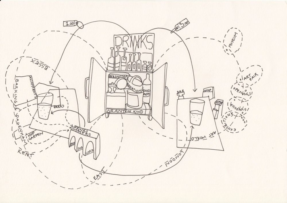 Company Drinks was set up by Kathrin Böhm from Myvillages with funding through the Create Art Award, and registered as a Community Interest Company in 2015. It and uses its art connections to challenge the role and use of art, and to trade.