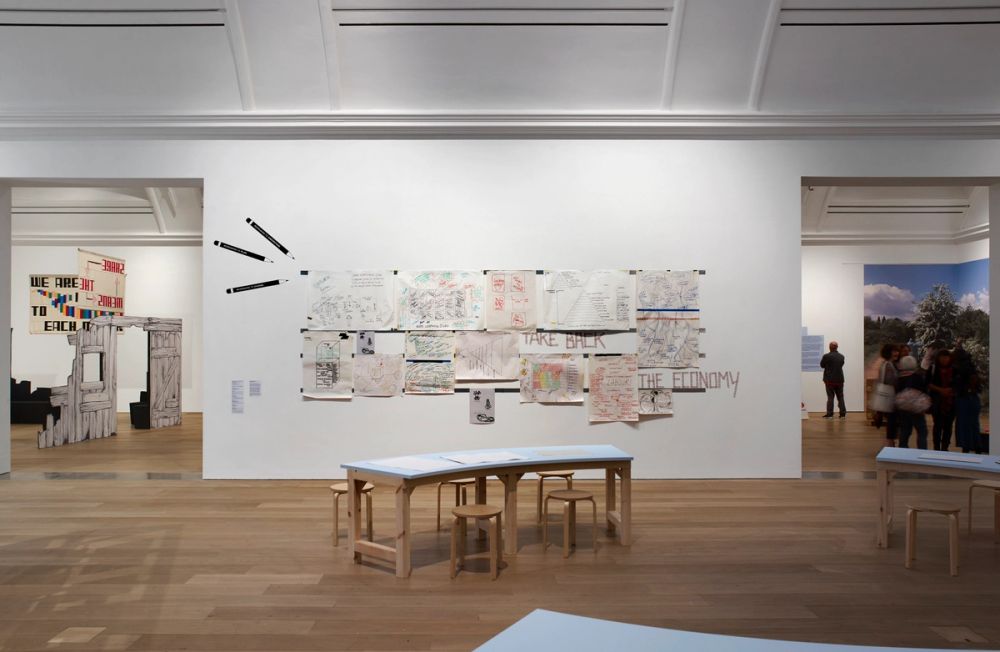 Kathrin Böhm and Kuba Szreder (Centre for Plausible Economies) set up a Redrawing Room for Economics the Blockbuster, an exhibition at the Whitworth Art Gallery in Manchester which presents 10 contemporary art projects that each operate as real-world economic systems. Responding to the failure of the mainstream capitalist economy, the selected projects propose art practice as economic organising and ways of ‘doing business’ towards social change.