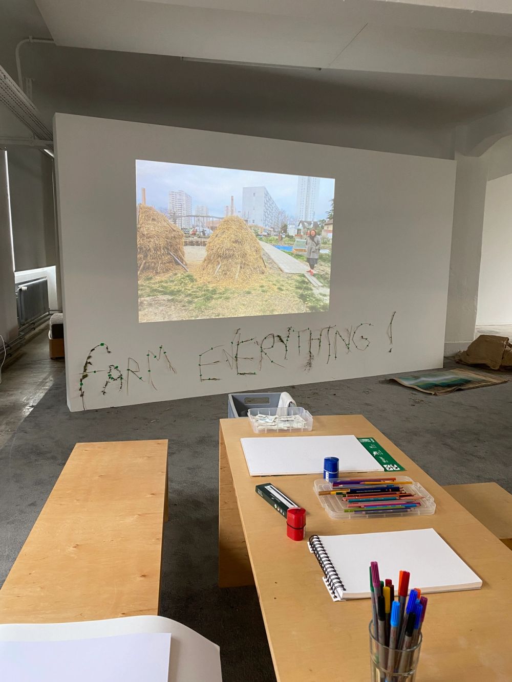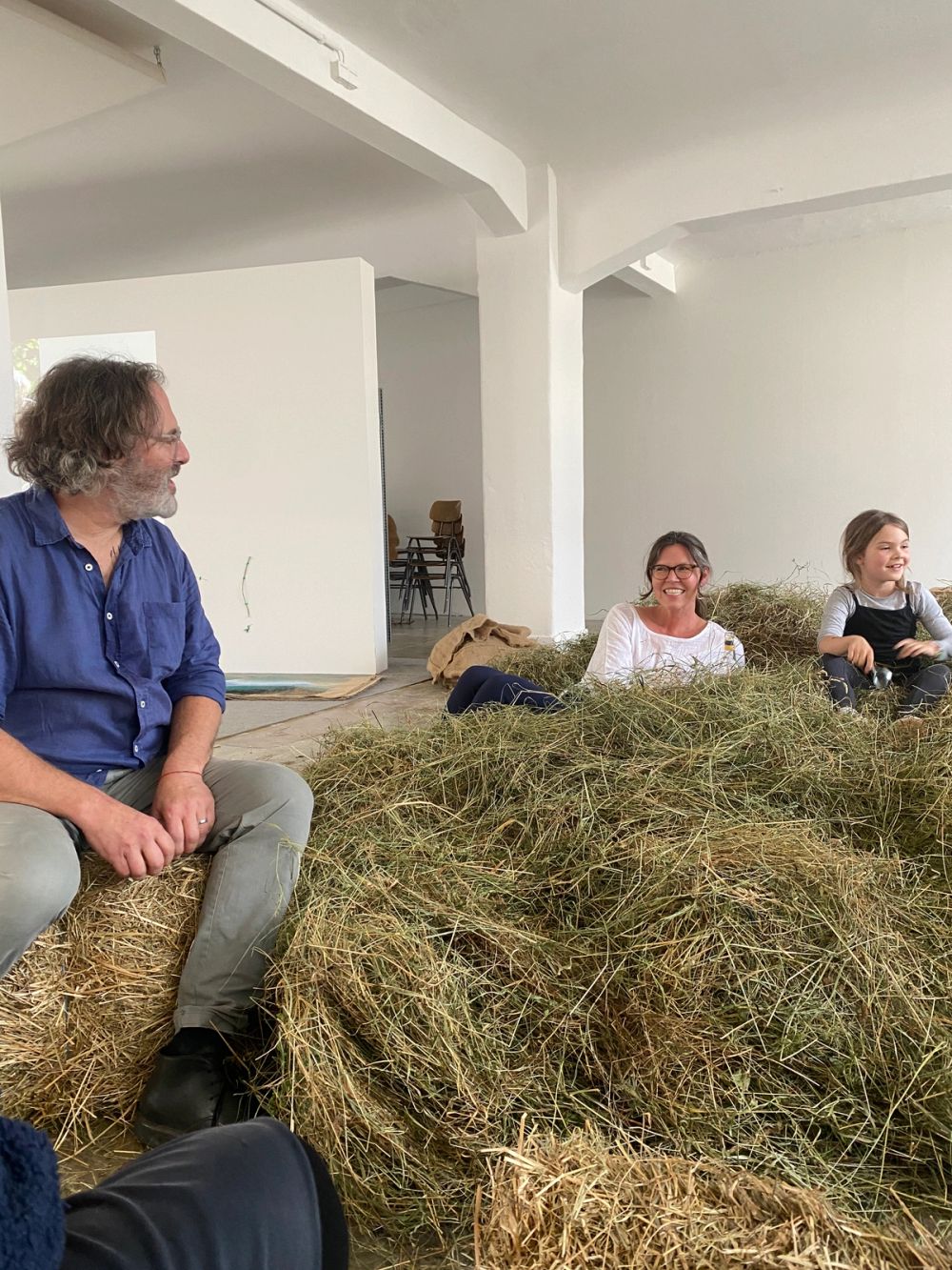 This Heuhaufen is a collaboration between Kathrin and Wapke from Myvillages, with Stephen Wright and Tamarind Rossetti, whose motto „Farming Everything” shapes their artistic directorship work at the Künstlerhaus.