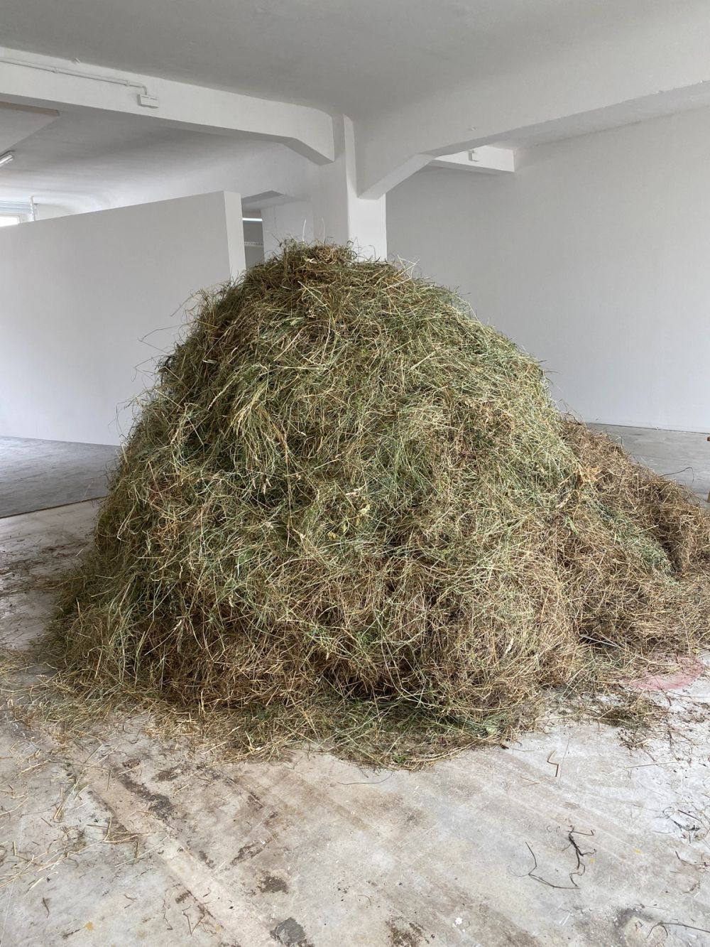 The hay was made locally and brought to the main gallery as material, artistic practice, sculpture, furniture, more-than-human environment and a reason to discuss relationships between shifts in contemporary art and in agriculture.
