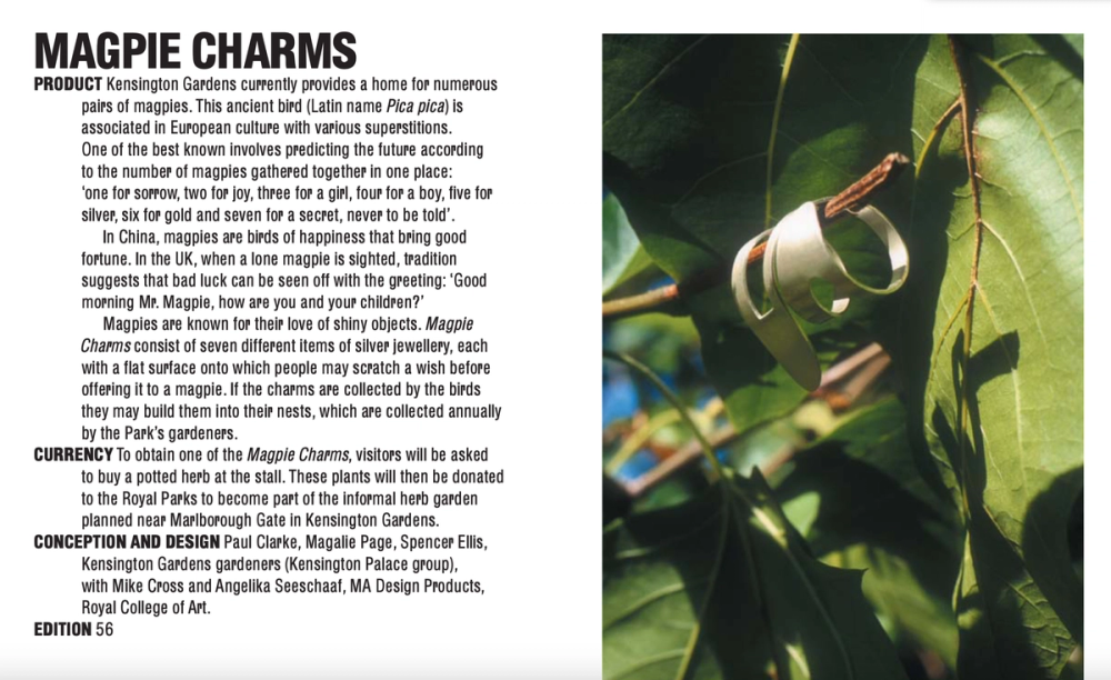 In phase one, different user groups collaboratively developed a series of park-related products that revealed less-known and invisible aspects of using and running Kensington Gardens. The products were later presented and traded from a mobile stall in the park, using non-monetary currencies for barter and purchase.